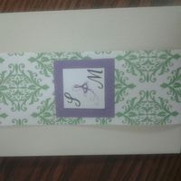 Here is a mock up of my invites.. Which ones do you like best? #1 - Green belly band w/ purple backed monogram #2 - Purple belly band w/ green backed monogram #3 - Purple belly band w/ purple backed...