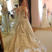 I went dress shopping with my mother and two bridesmaids yesterday and bought a dress. It's completely the opposite of what I thought it would be...satin, a-line, train...I thought I wanted lace,...
