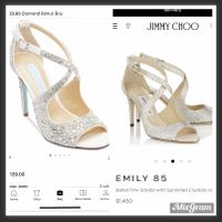 I love these shoes...they’ll go perfect with my dress... Macy’s vs. Jimmy Choo..... Slightly different but looks the same to me!!! Macy’s it is😂
