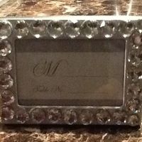 Just purchased a small frame from $1 store and bedazzled it. Looks pretty good! Add guest name and table number
