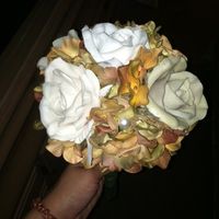 Still not finished with wrapping the stem. There are pearls between the roses and a crystal like pin in the middle of the center rose. What do you think? I also included a pic of my BM's dresses. ...