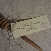 OK ladies I need advice we are doing honey dippers as escort cards and a jar of honey at each table setting for favors. Which style looks better? or any input on improving?