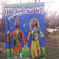Showed my brother and his bff around Hell after dinner so Joe and I were good sports and posed... "A marriage that starts in Hell has no where to go but up"