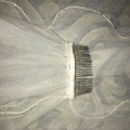 So after all your amazing feedback I've decided on a fingertip veil and I found three veils secondhand that I really like the look of. The first has clear beading and sequins down the rolled scalloped...
