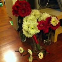 Since it's been raining ALL weekend, one of my BM's came over on Saturday and helped me do the bouquets. And by help, she cut them all and arranged them and then I tape and wrapped with ribbon. She's...
