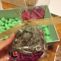 Finished my bridesmaid boxes last night! I love them! The theme is "Love is Sweet." I filled them with inspiration photos, pics of me with each of the girls, Liz Lovely vegan cookies, ring pops, and...