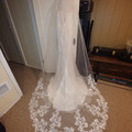 Hi ladies! So I found two veils I like but I don't know which one looks better or if the veil color is too white compared to my dress. The two fabric pictures are so you can see the lace next to the...
