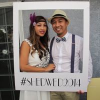 This past weekend, my MOH threw us a 1920's themed wedding shower. She did an amazing job on the decor! She even made a cute little "photobooth" station for us, complete with props and our own...