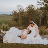 Due to covid we had to postpone from March to October. We also got our guest count down to a total of 12 people including us. We got married at Bok Tower Gardens. Dress is style Lizzie by morilee....