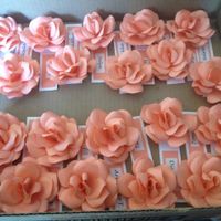 My mom has been working so hard on these. What do you ladies think? I have coral, mint, and white ones to signify which meal each person gets since it's a served dinner.