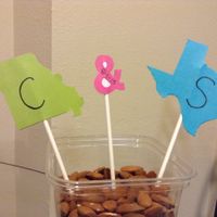 I finished my 1st DIY tonight, our cake topper with each of our home states and initials! The picture of the wooden states topper from etsy was my inspiration but wood didn't really fit our theme/feel...