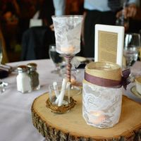 Hi everyone! Anyone in need of rustic centerpieces? I am giving away enough for 15 tables. Each table has a mason jar, wine glass, 3 votives (1 decorated, 1 clear with branch ring) and white Ikea...
