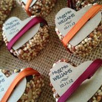 Option #1 (photo 1 and 2) Bird seed hearts with display. $0.75 per heart. Total cost with display: $60 Option #2 (photo 3) Candles with custom labels. Basalm Fir or Orange and Evergreen...