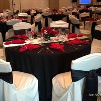 Here are mine. Im still in a toss up whether I want black tablecloths and a ivory runner or ivory tablecloths and a black runner. My colors are black, ivory and red. Im not doing chair covers, and my...