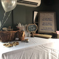Our DIY card box is made out of two crates that we stained and attached a latch and hinges. I added leaves and pine cones to our welcome sign and our seating chart. I made our table numbers and the...