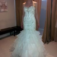 After looking at a Maggie Sottero at a consignment shop and liking it, I went out to the other shops around to see if anything could top it (I didn't think it could happen!). I found my dress! First...
