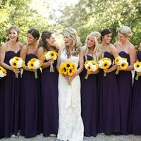 Did your Bridesmaids have different flowers than you? Our wedding colors are Yellow(SUNFLOWERS) and Blue. I cannot decide if my BM's should have all sunflowers for their bouquet and I have Sunflowers...