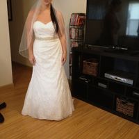 I had my first fitting today! I got my dress at DB but went to a private seamstress for alterations. I'm having my shape changed to be more trumpet, sides taken in, a slight hem, adding cups & buttons...