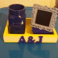 Im very proud of some of the do it yourself decor. Our colors are Horizon Blue (Davids bridal version of royal blue), Canary yellow and seaglass (Davids version of light blue). We are DIYing most of...