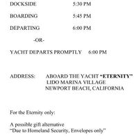 We just got this from our vendor. Now how would you word that guests cannot bring presents to the venue (getting married on a yacht) and where do I put that information? On the invite, wedding...
