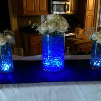 This is a kind of Mock up of the centerpieces. The white roses are actually going to be blue roses, I have them ordered from sams, but can't find them in the store, there is also going to be a mirror...