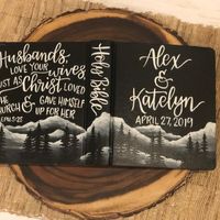Our guestbook came today and it couldn't be more beautiful! For those of you wanting a Bible for your guestbook I strongly recommend TheWhimsyBrush (https://etsy.me/2eimywp) on Etsy. She hand paints...
