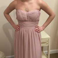 Hello! My two bridesmaids will be wearing this dress. It is floor length. Im trying to think of what jewelry would go well. My wedding is in a very urban industrial loft space contrasted with lots of...