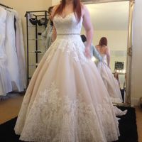 These are the two dresses that made it to the finals! One is satin a-line with crystal illusion top with pockets, and the other is tulle ballgown skirt with lace bodice. My date is 5-28-16, so I have...