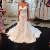 I bought my dress in a size 12. I'm about a 4 so my seamstress worked some serious magic. Here is the (almost finished product! along with what the dress looked like the day I bought it (it was even...