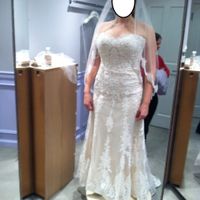 Dress 1 is the Sottero Viera sheath, which I tried on in a too-small size 3 weeks ago. Dress 2 is a Justin Alexander A-line that I tried on today. In each case, the people who were with me preferred...