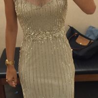 I fell in love with this Adrianna Papell gown in rose with pink and silver beading. It will be perfect for our sunset beach elopement! Here's the model photo. The photos of me wearing the dress...