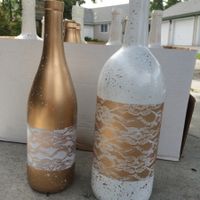 Here is what I have so far. The table cloth will be a light blue & I'm probably going to glaze the big mason jar to a light blue or a silver glitter not sure yet
