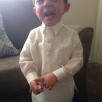 Hey everyone! Just wanted to share that my sons Barong (traditional Filipino attire) came in today! Took this picture...poor thing did not like wearing it at all. I ordered online to be custom made so...