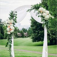 The questions about matching a gold/ivory dress to the groomsmens' shirts got me thinking: I've got a dress that's ivory lace over gold. And I'd been planning to drape our ceremony arch in tulle....