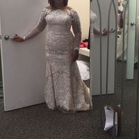 So initially when I tried on my dress I tried it on with an elbow length veil. After looking at the pic I didn't really like how short it was. Yesterday I tried on all lengths (Unfortunately only got...