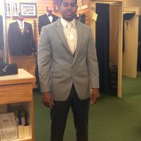 Originally he didn't want me to go suit shopping with him, but when he saw how many choices there were he changed his mind, lol. Here is his outfit (the pants will be the same lighter color as the...