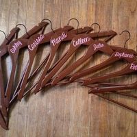 I couldn't believe how expensive pre-made bridesmaid hangers were so I decided to make my own! I'm going to add gold glitter bows around the hooks as well. For 9 bridesmaids and 1 flower girl it'll be...