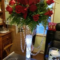 I wanted red roses and Christmas greens with bling. My weddings a Christmas wedding which one looks better for a Christmas wedding obviously it will be more filled with roses on top this is samples...