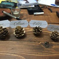 Omg I finished spray painting all the pine cones last week and now FH is working on our place cards I love them!
