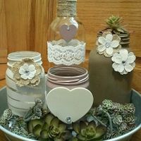 My DIY Centerpieces!! These are just mock-ups, for now. But, I wanted to get your thoughts on them. I will have gerbera daisies and dahlia in the bottles. I'm going to put candles in the 2 smaller...