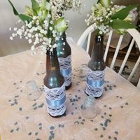 I did a mockup of our centerpieces today. What do you think? The shot glasses are just place holders for candles that I don't have yet. And I don't have the ivory tablecloths so I used a piece of...