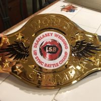 We are having a Lip Sync Battle at our wedding. Besides prizes, there had to be a Championship Belt. Put my own spin on this Party City version. What do you think?