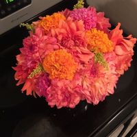 I bought a bunch of flowers from a farmers market nearby and thought I would experiment by trying to make a cute centerpiece for the dining room table, while keeping in mind the wedding. O. M. G. It...