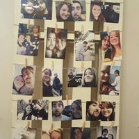 My dad picked up a pallet for me to use for a little project. I painted it light tan and just hot glued twine across it and hung a bunch of pictures of FH and I through the years with mini...