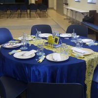 I designed this all. The only thing missing is the live flowers in the centerpiece