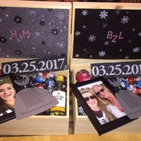 Not gonna lie...DIY is not my strong suit. This is a real rough mock up of my centerpiece idea. My colors are navy (table cloth color), purple, and gold. The lanterns are going to be painted/sponged a...