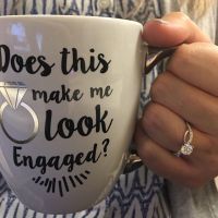 I was going to take a picture of this cute mug. But then I decided to take a cheesy mug/engagement ring picture instead. Now it's your turn! Post your mug/engagement ring pics! You know you have one ...