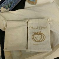 I bought these linen pouch bags on ebay for my candy bar. Since I have access to a laser machine, I decided to experiment and try to laser a design onto the bag for kicks. Here's the before and after....