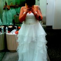 I showed a friend pictures of my dress. Alterations are not complete cause its second feeling appointment so that's why you see the pins at the bottom. She said the dress made it look like I'm flat...
