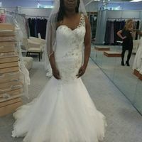 I said YES to the dres!!!. The pictures don't do it justice. The dress is actually strapless, but I am adding straps with a keyhole back. I am getting the veil for free! I am posting another comment...